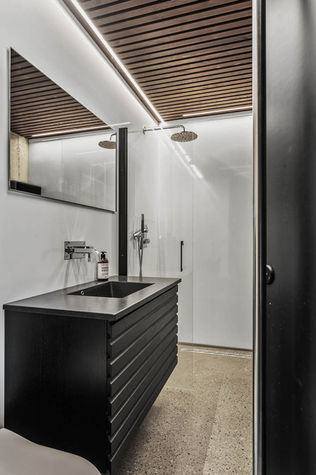 Bygget har ein tydeleg materialbruk og eit heilheitleg konsept som knytt saman eksteriør og interiør. Hovudromma vender seg ut mot havutsikta, og overgangen mellom ute og inne er minimal med vindauger med "usynlege" profilar, samt lik materialbruk i himling både inne og ute.